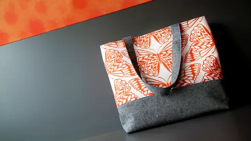 but I find that just a nice sturdy basic machine is all you need you don't really even need any fancy stitches just your basic straight stitch and you are going to need some different feet for your machine so the basic foot that comes with the machine is just fine for pretty much everything we're going to d'oh I also have here, this funky looking foot called a walking foot, and this is great if you've got some really heavy materials and it's often used in quoting because it helps really move all those layers through the machine. And some people find that when they have bulky seems and just a lot of material going through the machine that this walking foot helps, and actually, it kind of walks it sort on. Then this little foot here is a zipper foot. This bag that we're making right now does not have a zipper, but it's a really good foot tohave for maneuvering, kind of small places also for your machine. You are going to need needles, of course. Again, I usually just use a universal needle. Um, they come in these little packs of, you know, five or six needles, depending on the brand. This one is a top stitch needle, and I think that top stitching is kind of a sticking point with some people that just are really nervous about making that straight. So we have a couple tips there one is, if youse matching thread it's not so noticeable. I mean, I love a contrast top stitch, but if you really are, like, not sure that it's going to look good than you know match your threats so as you can see on my little example here this is a sort of had to reflect linen fabric and I've used white stitching here the top and which is normal normal thread and you can see that it blends pretty well um I'm sort of talking about needles and thread here at the same time because this top stitch needle has an elongated hole in it and that helps move the thread through there's also top stitching thread which is a little thicker and you can see the second line of stitching here is actually made with the top stitching thread so that's if you're you know a little more bold and you want your top stitching to show up a little more, you know, gaining confidence you can use that and then this other needle here is kind of funny looking it's a double needle and it's actually says jean's twin needle and you can use that on on moveon's like our bag is going to be made out of today and that will do two rows of stitching that air completely parallel so even if you're crooked, they'll be parallel perfectly in your group good way that you so but we're not going to worry about that today because you know, this is our this is our cut your teeth kind of bag we're just going to get started and um it'll be great so ok, so we talked about needles uh thread and now we're going talk about marking tools so there are several types of marking tools you're probably most familiar with this one it's a disappearing ink marker and this particular one has two different ends one disappears with just a wr and just over time it'll banish magically on then the other end is removed with water so it kind of depends on what your project is and what your fabrics are. This tool is um called a choc liner and it has a little um and I know container part section that has chalk powder in it and then the end has a little wheel so as you go along and that should feel seed on here anyway it lays down a little line of shock and that is great on darker fabrics where sometimes you know this purple or blue in clone show up as well and then another tool that I like that this is not actually made for sewing, but it's a fricassee on pen and there are marker versions and kind of a ball point version and they're really cool because they are removable with heat so you can mark a nice you know, dark line on your fabric and you know, for a placement of hardware or something like that and then you can just iron right over and it disappears so the only the only small worry about that is if you know your sewing a winter coat and then you go outside in the cold that they think comes back when it's really cold but you could make it go away with heat so eso again it's it's just a tool that sewers have sort of adopted even though it's it wasn't meant for that purpose. Okay, so our next thing to talk about is our cutting tools and I usually use a big pair of shears and a lot of people have different brands that they're particularly you know that they particularly favor. I have this on nick rid brand I askyou skinner's um just as long as they cut well and you only use them for fabric. I also have a pair of pinking shears here and they have the's little jaggi teeth and they are great for trimming seems and curves and just getting rid of bulk on your seem allowances and then a small paris scissors it's nice to have for trimming thread but not a necessity also have a seam ripper which sadly is a necessity and I think that's that's an obvious need in your sewing box and they do get dull so if you've had one forever or if you have like your grandma's or something like that, you might consider getting a new one because it's nice to have a sharp one this isn't a cutting tool per se, but you can use it to make a small hole it's called and all I always have to say that very carefully there nothing owl, it's all a w l and that's great for poking holes for hardware and some other things and then of course we have a rotary cutter and healing self healing matt to cut on and um you also use that with a plastic ruler and we'll get into that later too. I'm now let's talk about things to kind of hold your work together as you're working on it so traditionally pins to set the type in your layers together is you're selling um I'm a big pinar some people like not to pin, but I don't know if it's the precision or or what, but I'm I liked pin and then another option are these little wonder clips and these are pretty cool they'll hold your work together especially if you've got some really bulky areas they are