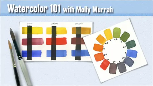 nted. It was painted on dry paper, which is how I got these these sort of intense, crisp edges but this met this when it was still wet and it bled together so the thing about color is that you could get a beautiful painting without drawing anything without having a discernable shape or a recognizable form of any kind and you can still end up with just a lovely painting so like what hans hoffman said at the beginning we see all of life through color and think about the color symbolism that's out there you know colors arouse emotions yellow stands for friendship and attraction and it's a confidence you know think of the sun big son you know confidence intellect red is passion love danger anger those kinds of sort of scorpion qualities dark blue is impulsive uh it also represents depression you know, you say I'm in a blue mood today uh it represents psychic things things that are changeable in nature the sky changes you know every ten minutes so colors arouse emotions and you can create emotions in your painting by understanding what colors do and how they arouse emotions. So if you understand your color fundamentals you khun do a painting that if you take this painting apart it's crazy I mean, you know, look up here in this area look at the bright pink on the side of that of that building and over in that one over there the bright pink I mean if you understand colors really, really well then you can understand it frees you to be creative and where you put them how many people would think of making a shadow pink on one side and green on the other, but take a look at this painting? Now? This was done by frank webb he's probably one of the top five most famous watercolor artists in the world, and I I hesitate to even guess what he would get for this painting, but I love his paintings, he has a sort of an abstract style, and his use of color is just magnificent, so understanding color from fundamentals will help you be very creative. You can't think outside the box to a little bit with this kind of situation. Absolutely, absolutely, uh, now this is color strategy now you really can't do anything without strategy. Now, if you take a look at this shot, this was when I went to italy a few years ago with my instructor, dan lemley, this was a photograph that I took of the scene that she painted look at her painting now I would never think to paint that like that, but look what she did, orange windows and aqua shadows and and, you know, a rainbow of colors in the stairs is, and she put different colors in her sky, then we're really there because the colors that she put in the sky with colors that she needed to offset colors in the painting, so understanding your fundamentals and being able to plan your strategy lets you create very exciting subjects out of very exciting paintings out of boring subjects and that's that's a skill that you know I think is amazing just amazing so you use complementary colors to highlight other colors if you put two compliments next to each other both of them will jump off the page they will they will bounce they will bounce forward to the I uh so think about putting colors where the painting needs them not necessarily where you see them okay get creative and where you put it now this is a difficult challenge for me is a za realistic painter I go oh, I see that I'll paint that you know you don't want to do that you want to try to be bold in your statements and put colors where you don't see them now this is a painting by one of my favorite painters ted nuttall I hadn't mentioned him last week uh he takes risks with color like nobody I've ever seen look at that boys chin I know I know isn't he just is dreaming look at that boys chin now in this section there's hardly any skin tone in there whatsoever it's blew his chin is blue but then the other side of his chan has skin tone in it but that it's so exciting to me I mean, he just enlivens the painting by doing that. One of these boys eyes is blue and the other one is green put two different color eyes in there. Take a look at he's, famous for his sloppy dot technique. I think I talked about last week. He put a sloppy dot here that overlapped the forehead and then over leapt on top. Bram now, if you think in terms of planes and three dimensions and all of that, you wouldn't think to do that, but it just ties it all together. Then he brings that color in down there brings it in down here, there's a sloppy dot right here because he thought that that curve in the shoulder was important. He's amazing there's a magazine the summer issue of american artist watercolor has an entire, I think six or eight page article on two of my favorite painters. One of them is ted, not all, and the other one is stan miller, and a little bit later on we're going, I'm going to show you some pictures of that stand. Miller paints he's an amazing artist, and they're both in that are in that magazine. I was so thrilled to get it, and he has the paint dripping down. He's, the one who has during drips and literally every painting. Now, this is just the boy's face because I wanted to zero in on his face that you could see this chin and see the different colors in the eyes and everything. But this painting actually goes down, you know, sort of below the boy's waste he's wearing some overalls is one of my favorite paintings that I've ever seen. Do you know, it's? Sloppy technique is what really kind of pulls your eye through the painting that's where your I want to now, a lot of people look at this and think, uh, charles read charles rate is one of the artists that I that I put, uh, on last week's slide, where I put all the links of various artists. Charles reed is does contour paintings, and he is very, very loosey goosey, but he manages to create an alive nous in this loosey goosey representational technique that very few artists they're able to do ted can do it. And a lot of people see ted's work and think that he studied with charles reed for years. I 